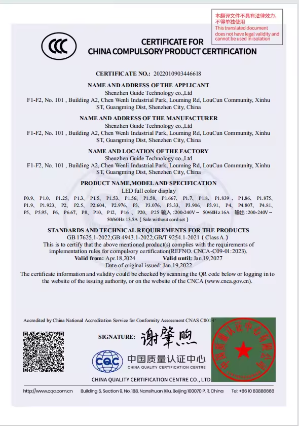 Guide led display screens come with CE and ROSH certification reports,ensuring compliance with international safety and environmental standards.From the selection of raw materials to every stage of production, Guide maintain strict quality control to guarantee the highest performance and reliability. Additionally, Guide rental led video wall are backed by patented technology, reflecting our commitment to innovation and excellence. This rigorous approach not only enhances product durability but also provides peace of mind to our.
